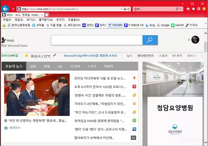 이상으로 마이크로소프트의 오래된 구형 브라우저인 인터넷 익스플로러 브라우저의 상단 색상 변경에 관하여 알아 보았습니다.