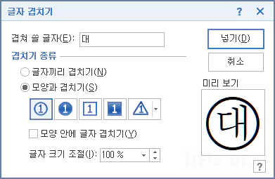 한컴 오피스 한글 워드에서 원안에 글자 들어가게 만드는 방법