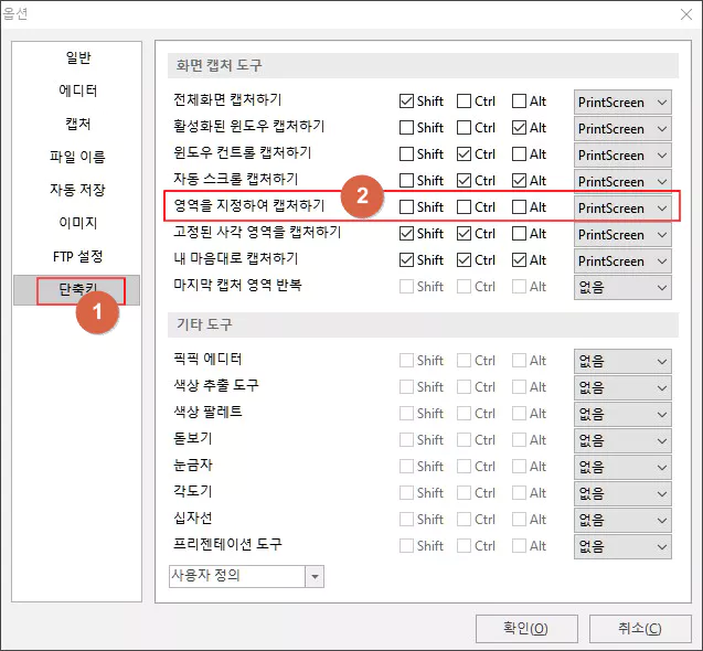 1. 캡처 단축키의 원키 캡처로의 변경