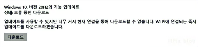 랜선으로 연결된 와이파이와는 무관한 데스크톱 PC에서 특정 윈도우 업데이트 시 "업데이트를 사용할 수 있지만 너무 커서 현재 연결을 통해 다운로드할 수 없읍니다. Wi-Fi에 연결되는 즉시 업데이트를 다운로드하겠습니다."라는 오류 메시지와 함께 업데이트가 중지되는 경우가 있습니다.