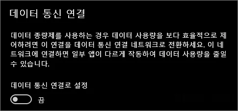 윈도우 10에서 데이터 통신 연결은 기본적으로 데이터 제한이 있는 인터넷 연결을 말합니다.