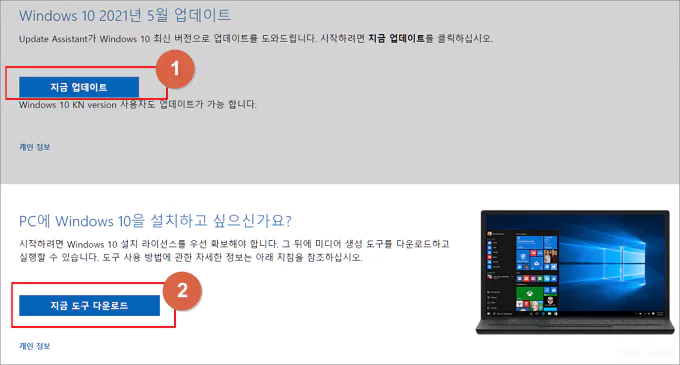 3. MS 윈도우 업데이트 링크를 통한 직접 업데이트