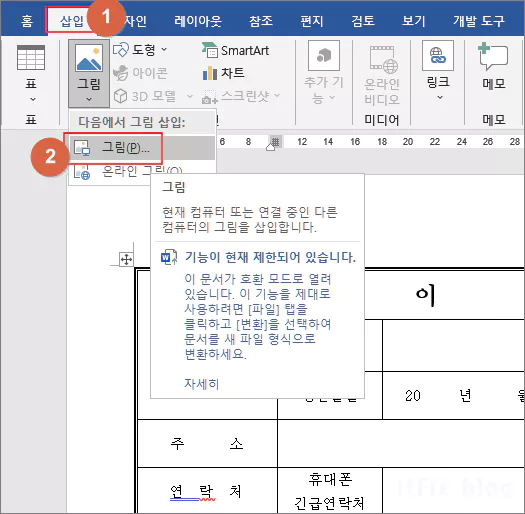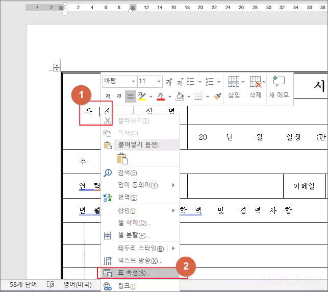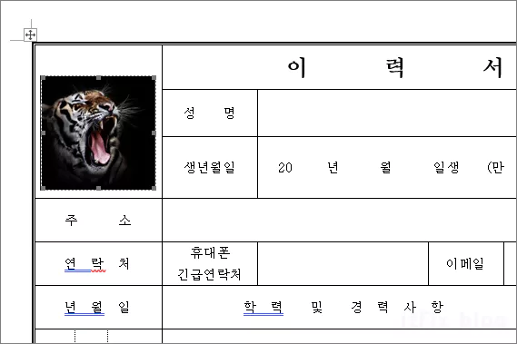 MS 워드에서 이력서에 사진 이미지 넣는 방법