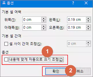 옵션 버튼을 눌렀을 때 팝업되는 표 옵션 창에서 하단의 '내용에 맞게 자동으로 크기 조정' 부분이 체크 표시되어 있는 부분의 체크 표시를 지운 다음 확인 버튼을 눌러 주고, 표 속성 창도 확인 버튼을 눌러 닫아 줍니다. 만일, 이 부분이 체크 표시되어 있는 상태에서 그림을 삽입하면 이력서 양식의 다른 부분이 줄어들면서 사진의 크기가 그대로 중심이 되어 들어가게 됩니다. 큰 사진일 경우에는 이력서 양식의 우측 부분이 줄어들게 됩니다.