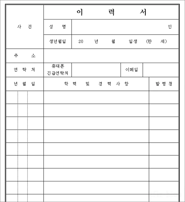 이제 본격적으로 기본 이력서 양식에 사진 이미지를 붙이는 방법에 관하여 알아 보도록 하겠습니다.