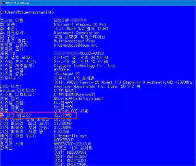 윈도우에서 보는 시스템 정보는 간략하게 보여주므로 다소 빈약하다고 느끼실 수 있는 데, 실제 설치된 메모리 용량 항목뿐만 아니라 기타 다른 항목까지 좀 더 자세히 보고 싶을 경우에는 아래와 같은 방법을 사용할 수도 있습니다.