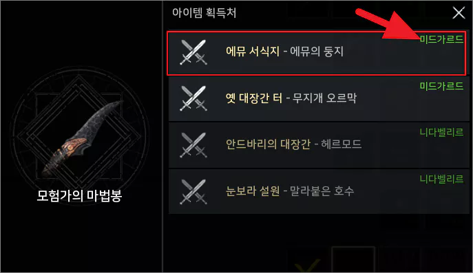 이렇게 하면 해당 아이템을 획득할 수 있는 사냥터를 알려주는 팝업이 뜹니다.