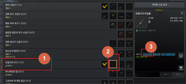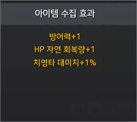 그럼 공격력 +1 수집 항목을 살펴보겠습니다.