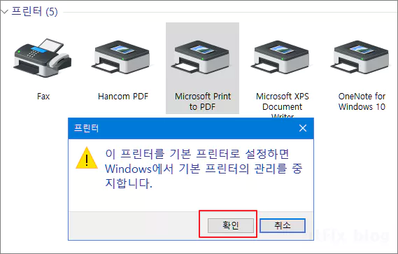 윈도우 10에서 기본 프린터를 지정해 두면 프린터에 관한 권한을 윈도우즈가 자동으로 관리하는 것이 아니라 사용자가 지정한 기본 프린터가 우선하게 됩니다.