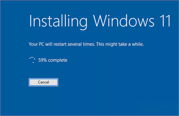 몇개의 설치 전 작업을 진행하고 나면 정식 설치를 시작하게 됩니다. 이후 파란색 화면으로 진행되는 설치 과정은 약간의 시간이 소요됩니다.