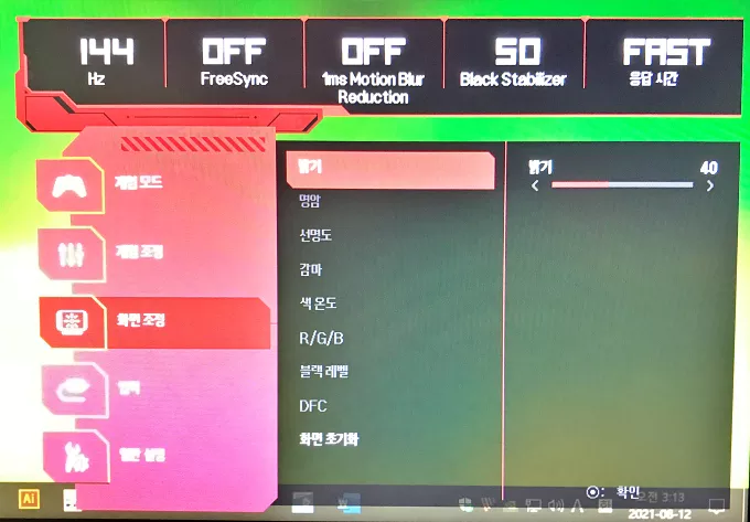 아래 이미지처럼 물리적인 OSD 조절을 소프트웨어 프로그램으로도 가능하도록 병행하는 경우가 많으므로 모니터 제조사의 모니터 설정 프로그램을 설치해 소프트웨어적으로 OSD를 조절하는 방법을 사용할 수도 있습니다.