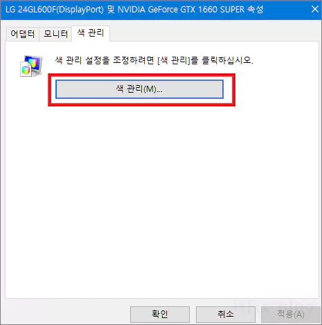 색 관리 탭을 클릭한 다음 색 관리 버튼을 클릭합니다.