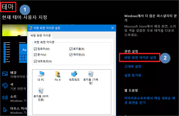윈도우에서 파일을 삭제하는 형태는 크게 네 가지 정도가 있다고 볼 수 있습니다. 이러한 모든 설정은 바탕화면에 있는 휴지통을 우클릭한 후 속성 창을 열어 설정할 수 있습니다. 만일 휴지통 아이콘이 보이지 않는 다면 바탕화면에서 마우스 우클릭한 후 개인 설정을 선택합니다. 개인 설정 창에서 테마를 선택한 다음 우측 창에서 바탕 화면 아이콘 설정을 클릭하시고 휴지통 등에 체크 표시하면 됩니다.