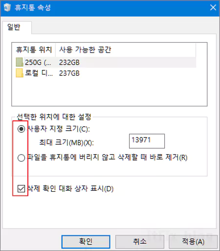 3. 삭제시 대화 상자 확인 없이 휴지통 이동
