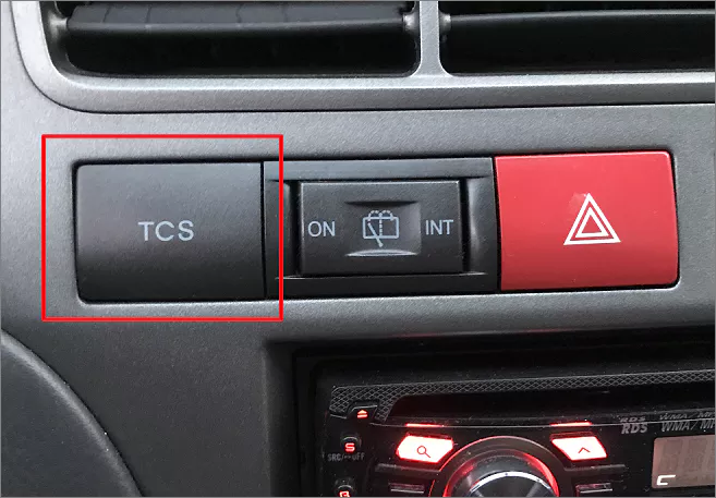 구형 아반떼 전면에는 뒷유리 닦는 와이퍼 버튼 왼쪽으로 TCS 버튼이 달려 있습니다. 이 버튼을 누르면 계기판에 TCS 불이 들어오고 다시 한번 누르면 사라집니다. 기본 옵션은 계기판에 TCS 불이 들어오지 않는 상태입니다.