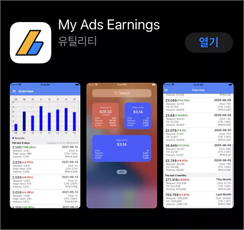 결론적으로 오늘 소개해 드릴 애드센스 앱의 대체 앱은 My Ads Earnings라는 앱입니다.