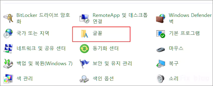 두 가지 방법 모두 윈도우 제어판의 글꼴 항목에서 작업하면 됩니다. 아래의 이미지는 제어판 항목 보기 옵션을 큰 아이콘으로 했을 때 보이는 항목들입니다.