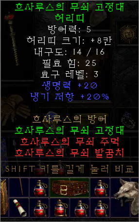 세트 아이템 이름은 흐사루스 세트로 흐사루스의 무쇠 고정대 허리띠 부분입니다. 레거시 버전에서 본 기억이 없는 것 같은 데 ... 오래전 일이라 기억이 확실하지는 않습니다.
