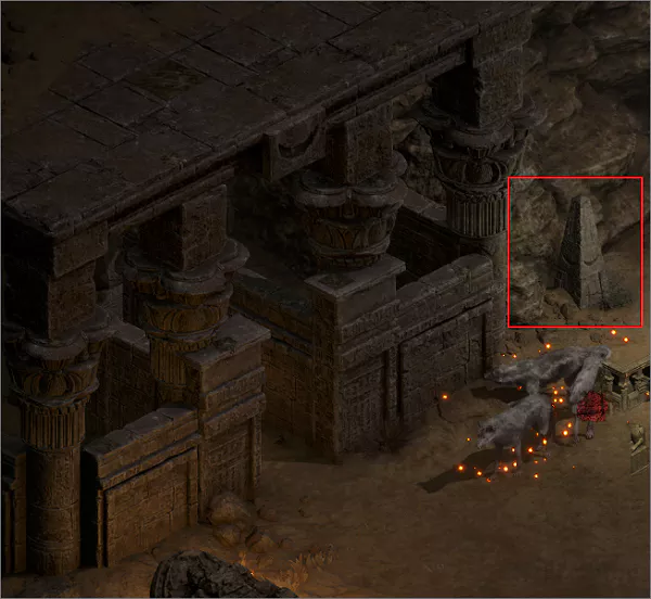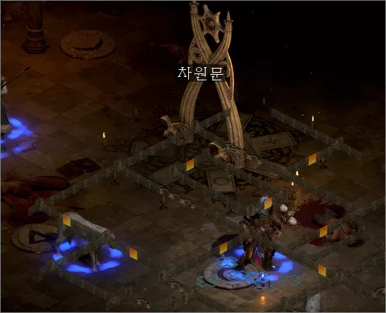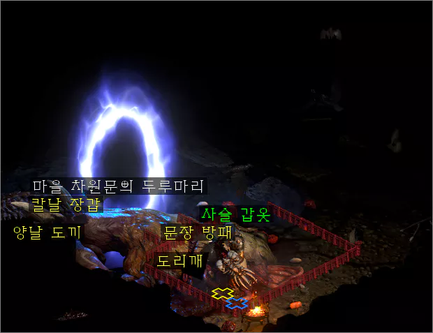 마을에서 신비술사의 협곡으로 이동한 다음 맵의 위쪽에는 무덤 입구들이 있는 데, 각 무덤의 입구 양쪽에 조그만 돌비석처럼 생긴 표식이 박혀 있습니다.