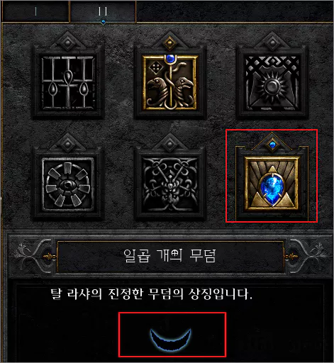 Q를 눌러 퀘스트 창의 마지막 퀘스트를 볼 때, 이전 퀘스트중 두 번째를 제외하고 모두 완료하였다면 진짜 탈 라샤 무덤의 표식이 떠 있습니다.