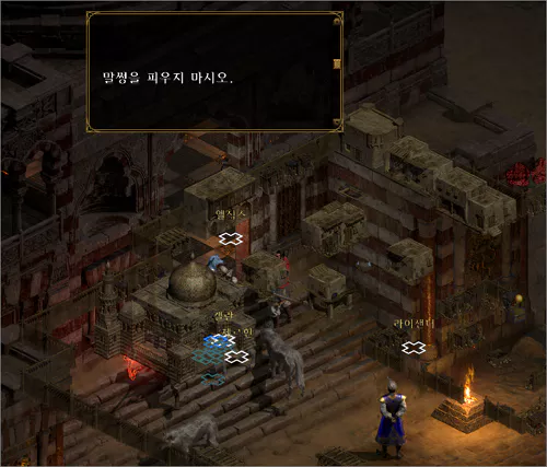 바로 마을로 가지 말고 듀리엘을 죽인 곳에서 뒤쪽으로 길이 열리는데 그곳으로 들어가면 티리엘이 있습니다. 티리엘과 대화를 하면 마지막으로 마을의 제르한을 찾아가라고 합니다.