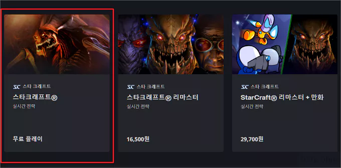 블리자드 홈페이지의 모든 게임 탭에서 아무런 추가 이름이 없는 스타크래프트를 검색하고 다운로드합니다.