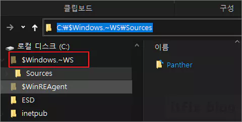 $Windows.~WS 폴더는 윈도우 설치 또는 업그레이드 진행 시 사용하였던 임시 파일들이 보관된 폴더입니다.