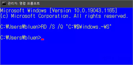 만일 권한 오류로 인해 위의 방법으로도 제거할 수 없다면 먼저 권한을 가져오도록 하는 아래의 명령어를 관리자 권한으로 실행한 명령 프롬프트 창에서 복사하여 붙여 넣기 한 후 엔터 해 보시기 바랍니다.
