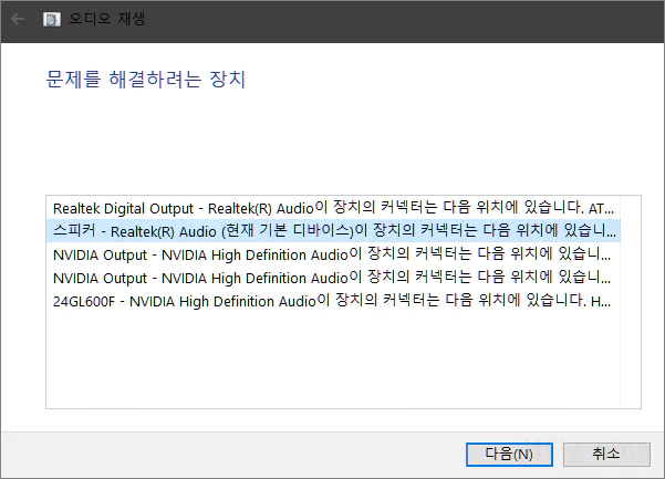 문제를 해결하려는 장치 창이 뜨면 다음을 클릭하고 진행합니다.