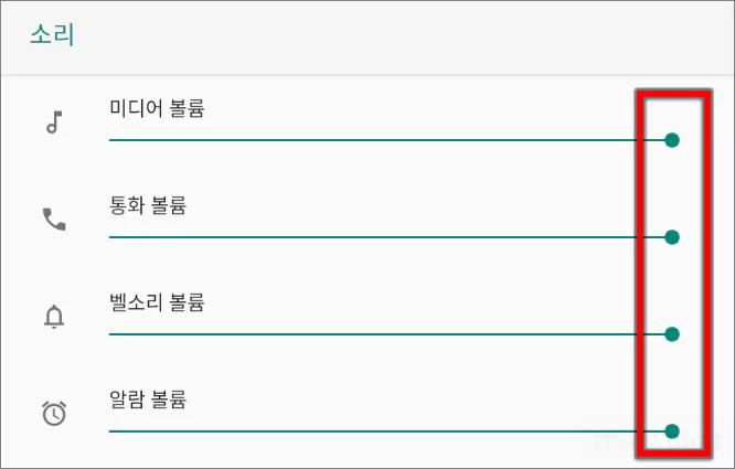 사운드 설정을 누르면 블루스택 사운드 세부 설정창이 나옵니다. 여기서도 동일하게 모든 종류의 볼륨을 최대치로 동일하게 설정해 줍니다. 이렇게 설정하게 될 경우, 블루스택의 음량 조절은 윈도우의 스피커를 통해 조절하면 됩니다.