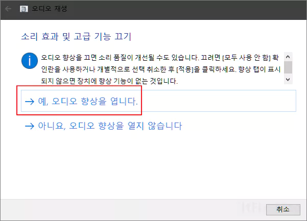 다음 창에서 오디오 향상을 엽니다를 클릭해 줍니다.