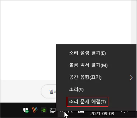 작업 표시줄의 스피커 아이콘 우클릭한 다음 소리 문제 해결을 클릭합니다.