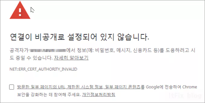 크롬 브라우저를 통해 특정 웹사이트에 접속하고자 할 경우에 '연결이 비공개로 설정되어 있지 않습니다.'라는 오류 문구를 출력하면서 접속하지 못하는 경우가 있습니다. 이러한 대상 사이트에 접속하지 못하는 구체적인 사유는 간단한 영문 표기로 그 내용을 추측하도록 표시하고 있습니다. 즉, '연결이 비공개로 설정되어 있지 않습니다'라는 오류가 생긴다면 구체적인 코드의 내용부터 살펴보시기 바랍니다.