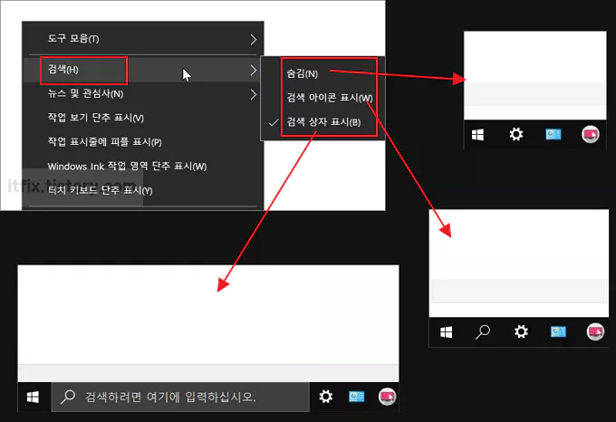 윈도우 작업 표시줄 검색 상자의 3가지 모양 만드는 방법