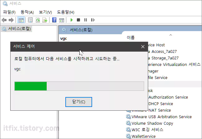 서비스 앱이 실행되면 목록에서 vgc를 찾아갑니다.