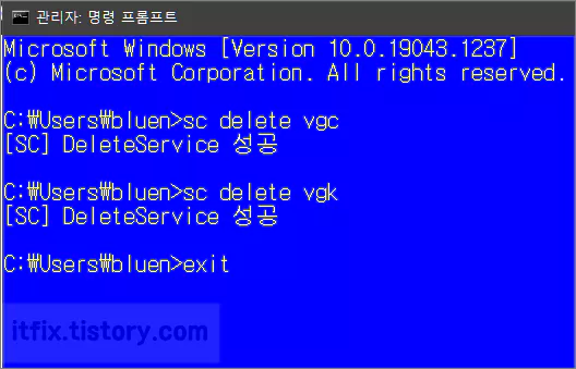 명령 프롬프트 창이 관리자 권한으로 실행되었다면 아래와 같은 문구를 입력하거나 복사하여 붙여 넣기한 다음 엔터키를 누르시기 바랍니다. 아래의 각 줄마다 입력한 다음 엔터키를 눌러 줍니다.