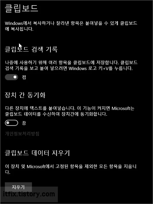 클립보드가 제대로 작동하지 않는 경우에는 윈도우 설정에서 해당 기능이 켜져 있는지 살펴보아야 합니다.