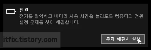 윈도우 설정 > 업데이트 및 보안 > 문제 해결 > 추가 문제 해결사로 진입한 다음 전원 문제 해결사를 실행합니다.