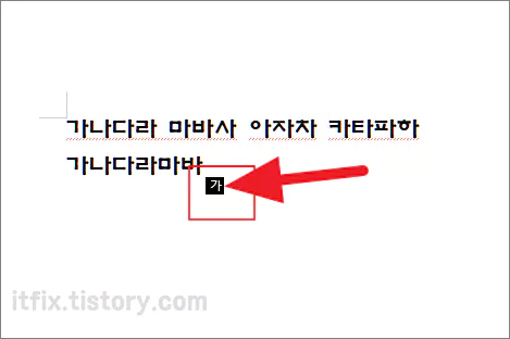한컴 한글 워드 타이핑 도중 몇초간 입력이 없을 경우 프롬프트 아래로 검은색 배경에 가 또는 A라고 써진 사각형이 뜨는 경우가 있습니다. 이는 한컴 오피스 2020에서 새롭게 추가된 기능으로 현재 입력중인 입력기의 언어를 표시해 주는 기능입니다. 만일 영문 타이핑이라면 아래의 이미지와는 다르게 A라는 식으로 영문 입력중임을 알려 주는 표시가 뜨게 됩니다.