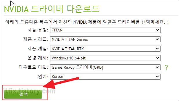 NVIDIA의 경우 자동으로 해당 PC의 칩을 검색해 설치 패키지를 추천하는 시스템이므로 컴퓨터를 잘 몰라도 상관없습니다.