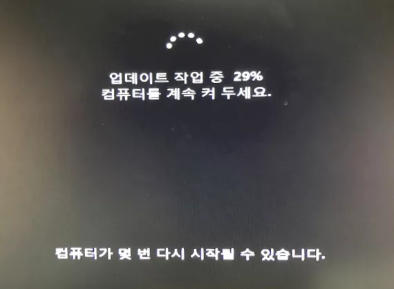 설치 시작 화면이 시작되고 완료까지 조금 시간이 걸릴 것 같아 약 1시간 정도 운동을 다녀왔습니다. 운동 외출하기 전에 마지막으로 본 화면 모습입니다.
