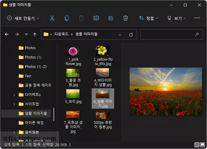 이미지 작업이 많은 분들의 경우에는 파일 탐색기에서의 미리 보기 창은 거의 필수라고 해도 과언이 아닙니다. 단순히 파일 아이콘 미리 보기만으로는 좀 더 명확한 이미지 정보를 판단할 수 없기 때문에 미리 보기 창이 중요합니다.