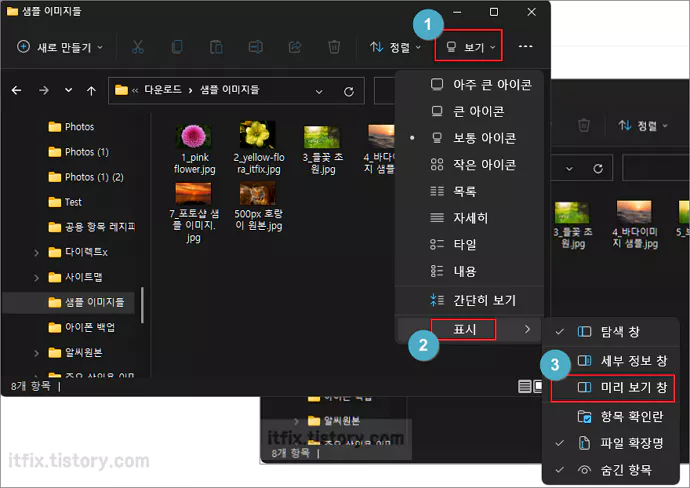 윈도우 11 파일 탐색기 미리 보기 창 보이도록 설정하는 방법