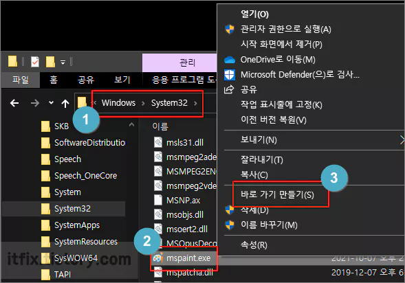 윈도우 10, 11 그림판 위치 비교 및 바탕화면에 바로가기 아이콘 만들기