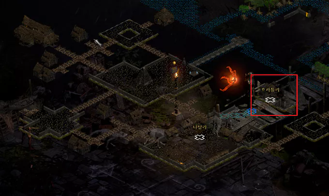 일단, 마을 쿠라스트 부두의 순간 이동진을 찍어둔 다음 밖의 정글로 나갑니다.