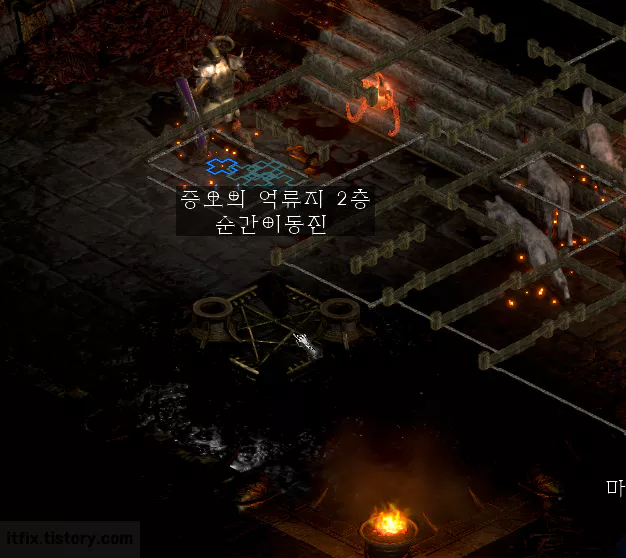 이곳을 찍어두면 메피스토를 반복적으로 잡게 될 경우에 이 전송진을 통해 메피스토에게 접근하게 되므로 중요한 웨이 포인트입니다.