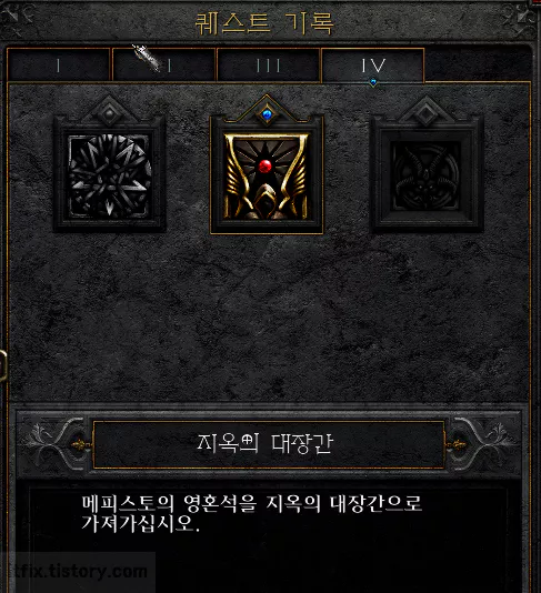 ACT3에서 메피스토를 잡을때 나왔던 메피스토의 영혼석을 보관하고 계시다면 이번 퀘스트의 재료는 바로 그 메피스토의 영혼석으로 보상을 통해 랜덤 하게 보석이나 룬 등을 얻을 수 있는 퀘스트입니다.
