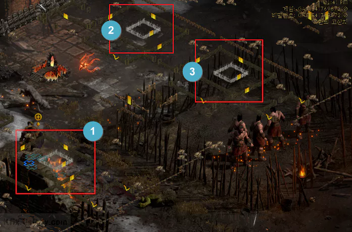 돌아다니다 보면 바바리안들 몇 명이 나무 울타리가 있는 우리 속에 잡혀있는 곳이 있습니다. 주위 몹들을 정리해 주면 지들이 알아서 포탈 타고 탈출합니다.