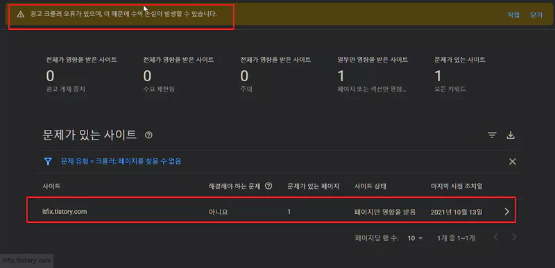 구글 애드센스 광고 크롤러 오류, 수익 손실 경고