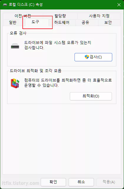 윈도우11에서 디스크 정리, 오류 검사, 조각 모음 하는 방법